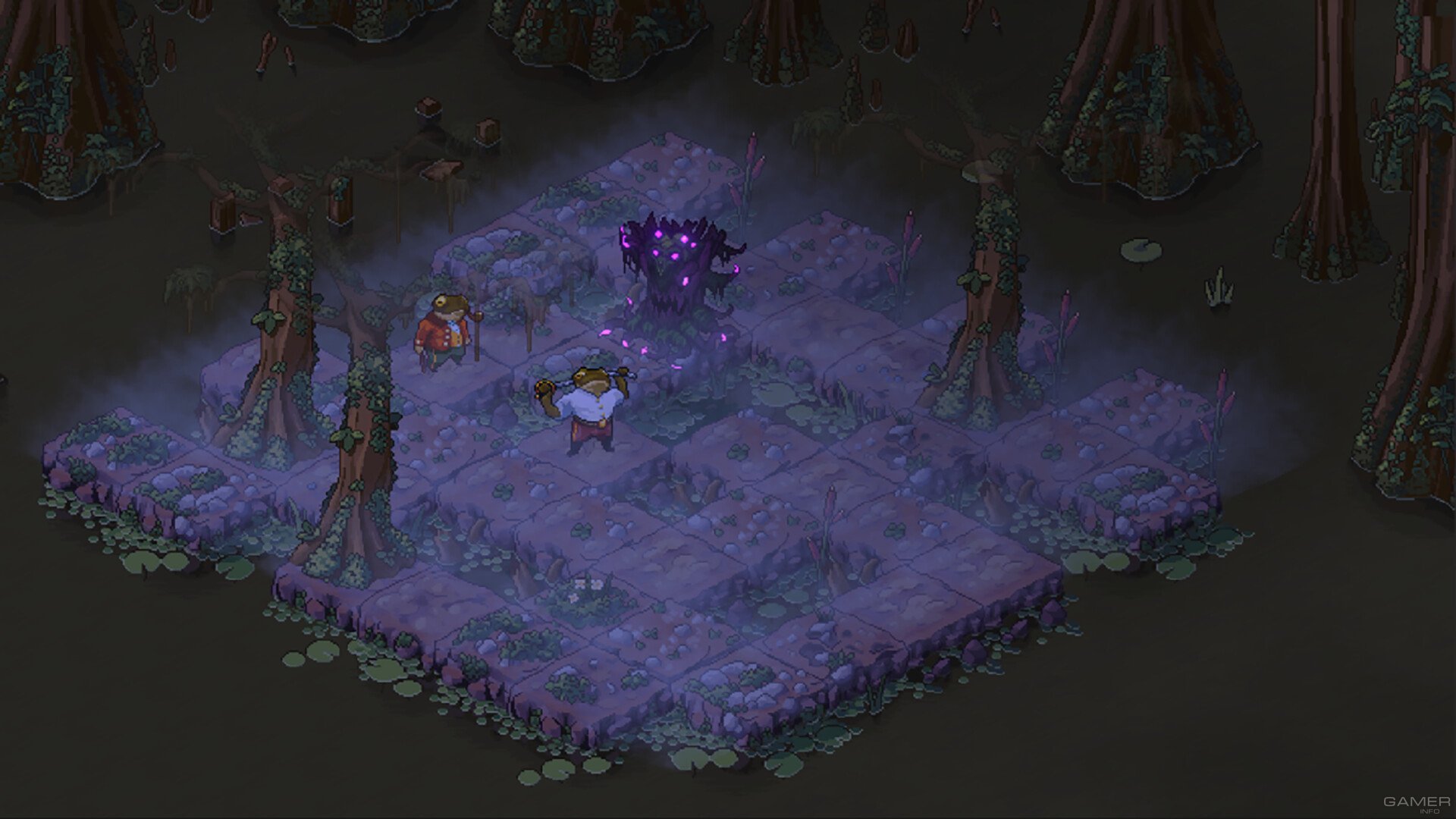 Для защиты жителей придется ставить капканы и улучшать территорию. Все это необходимо для того чтобы отбиваться от постоянно угрожающих врагов. Каждая жаба в поселении имеет свои уникальные особенности. У нее также имеются бонусы и слабые места. Особенность игры состоит в том, что каждый ее сеанс уникален. Достигается это благодаря процедурно сгенерированным картам. Сражения также изменяются и даже смерть позволяет персонажу набирать очки опыты.